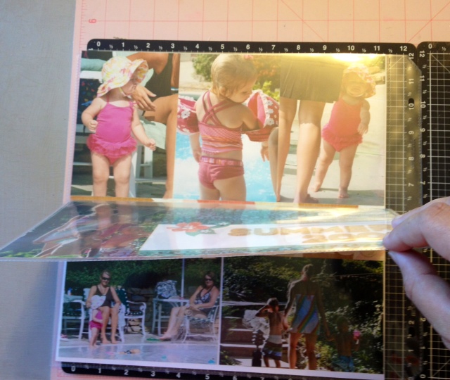 My family takes an annual Lake Trip to the same resort (which I have posted about before). . . and I take lots of pictures each year. I have an album that is all about this trip and I love looking back on each year and seeing how the kids have grown!! But, I do have a lot of the same types of pictures. . .going down the waterslide, swimmming in the same pool, mini-golf, etc. . . I don't need a gazillion scrapbook pages of each year.
